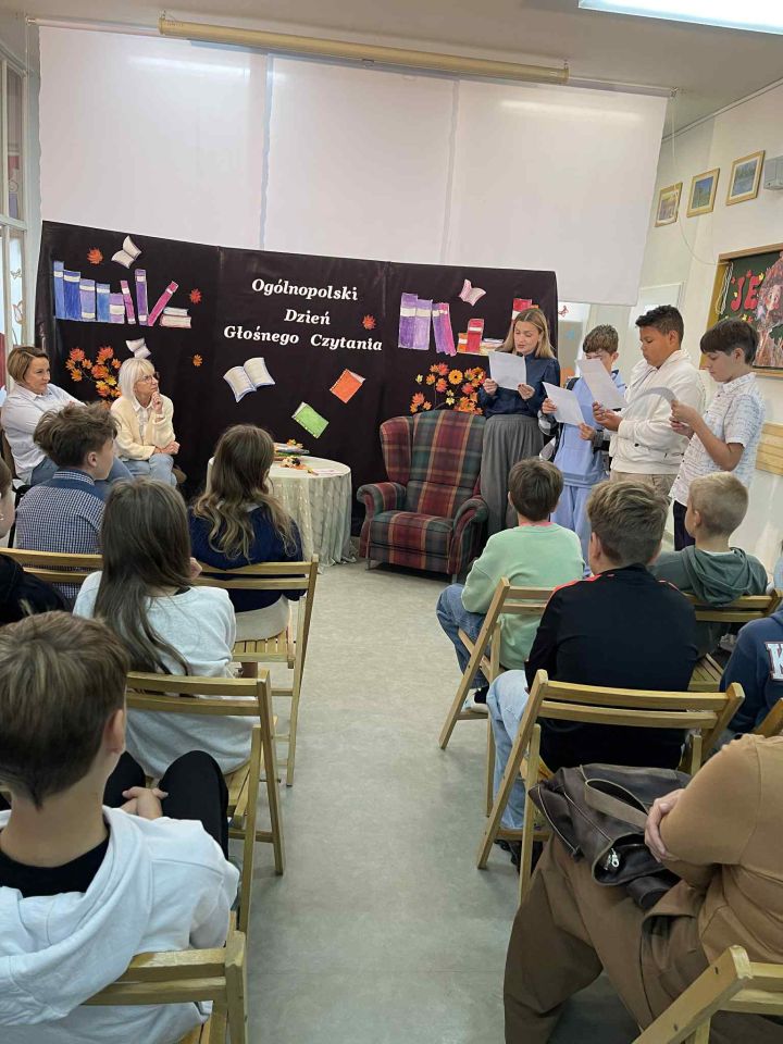 Takie pytania towarzyszyły spotkaniu, które odbyło się 29 września przed naszą szkolną biblioteką – miejscem szczególnym, aby w Ogólnopolskim Dniu Głośnego Czytania celebrować właśnie głośne czytanie.